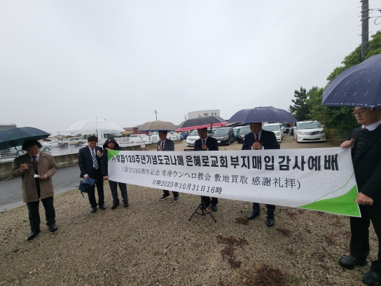 김현배 장로는 “전 성도가 함께 동참할 수 있는 구조라 더욱 감사하다”며 “이번 부지 감사예배를 계기로 도코나메에도 하나님께 예배하는 공동체가 세워지길 기대한다”고 말했다. 그는 이어 “우상 문화가 깊게 뿌리내린 일본 땅에 복음의 예배당이 세워지는 것은 마지막 시대를 향한 중요한 사명”이라고 강조했다.